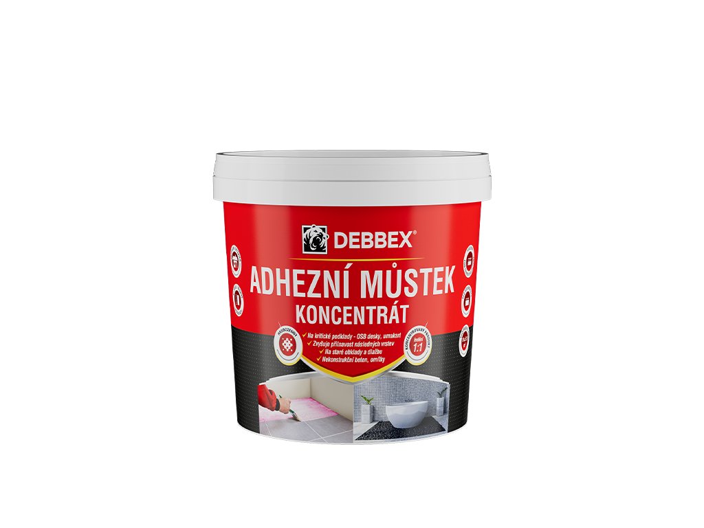 Adhezní můstek koncentrát je jednosložkový bezrozpouštědlový penetrační nátěr určený pro zpevnění podkladu a zvýšení přilnavosti dalších vrstev. Vytváří vysoce přilnavý spojovací můstek mezi podkladem a následnými materiály, jako jsou stěrky, lepidla, omítky nebo akrylátové barvy.