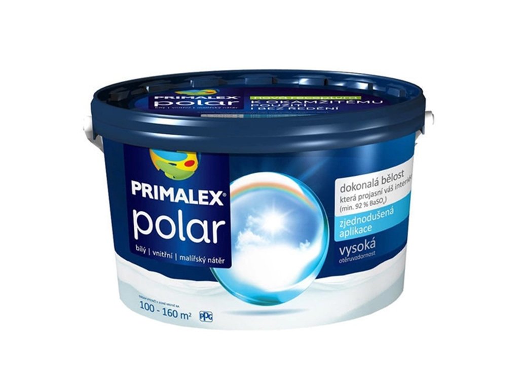 PRIMALEX Polar bílá je kvalitní disperzní interiérová barva navržená pro malování stěn a stropů v obytných i komerčních prostorech. Čistě bílý odstín zajišťuje světlý, neutrální povrch s dobrou kryvostí a je ideální pro klasické malířské úpravy i jako podklad pro další dekorativní nátěry či tmavší barevné odstíny.