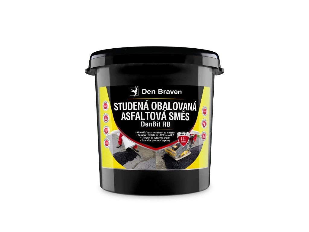 DenBit RB – studená obalovaná asfaltová směs 25 kg je praktický materiál určený pro rychlé opravy zpevněných ploch. Díky své připravenosti k okamžitému použití umožňuje snadnou aplikaci bez nutnosti zahřívání.