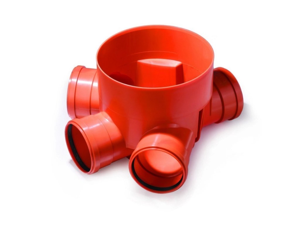 Dno šachtové Pipelife KGSGR400 je navrženo pro soutok tří kanalizačních větví DN 200 do jediné šachty DN 400. Toto soutočné provedení zajišťuje efektivní a přímý průtok bez ostrých změn směru a usazování nečistot. Je kompatibilní s hladkými prodlouženími DN 400, včetně těsnicí manžety pro spolehlivé uzavření systémů. Vyrobeno z odolného plastu (PP/PE) — zajišťuje vysokou životnost i v náročných podmínkách.
