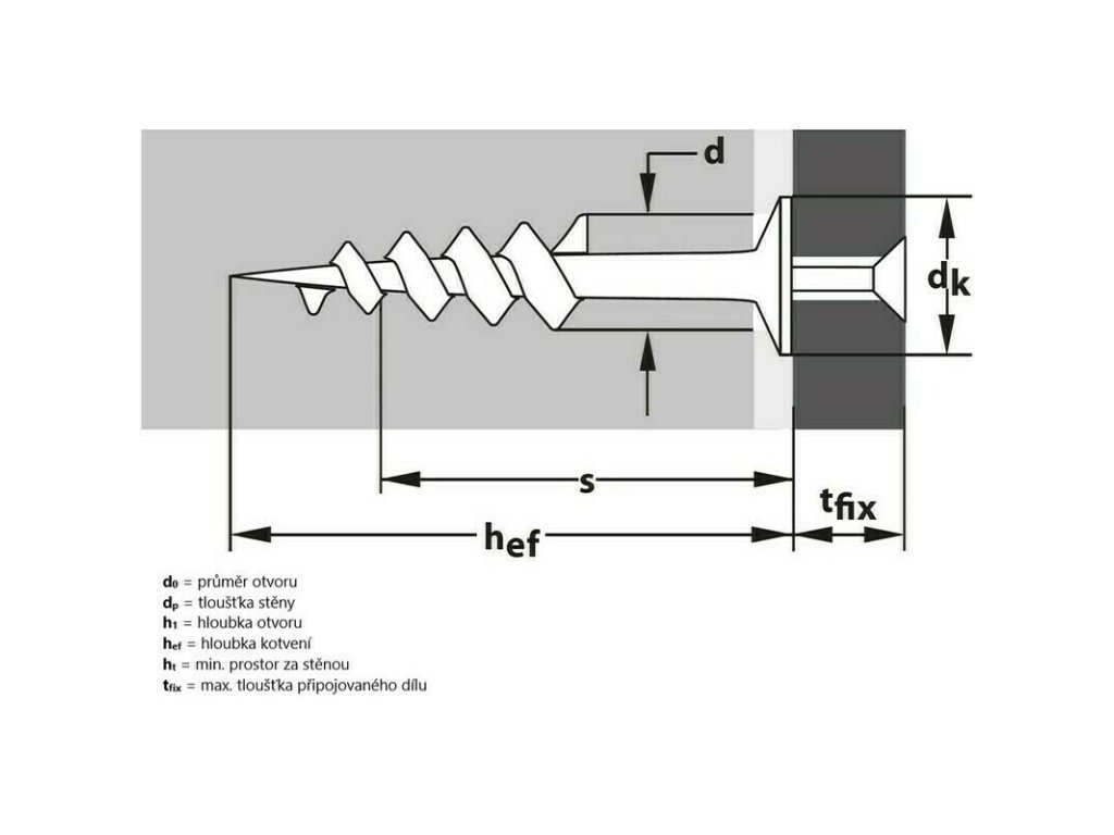 🟩 Tip od Stavago.cz: Pro ideální fixaci používejte vruty průměru 4,5–5 mm a šroubujte pomalu, aby nedošlo k poškození závitu hmoždinky.
