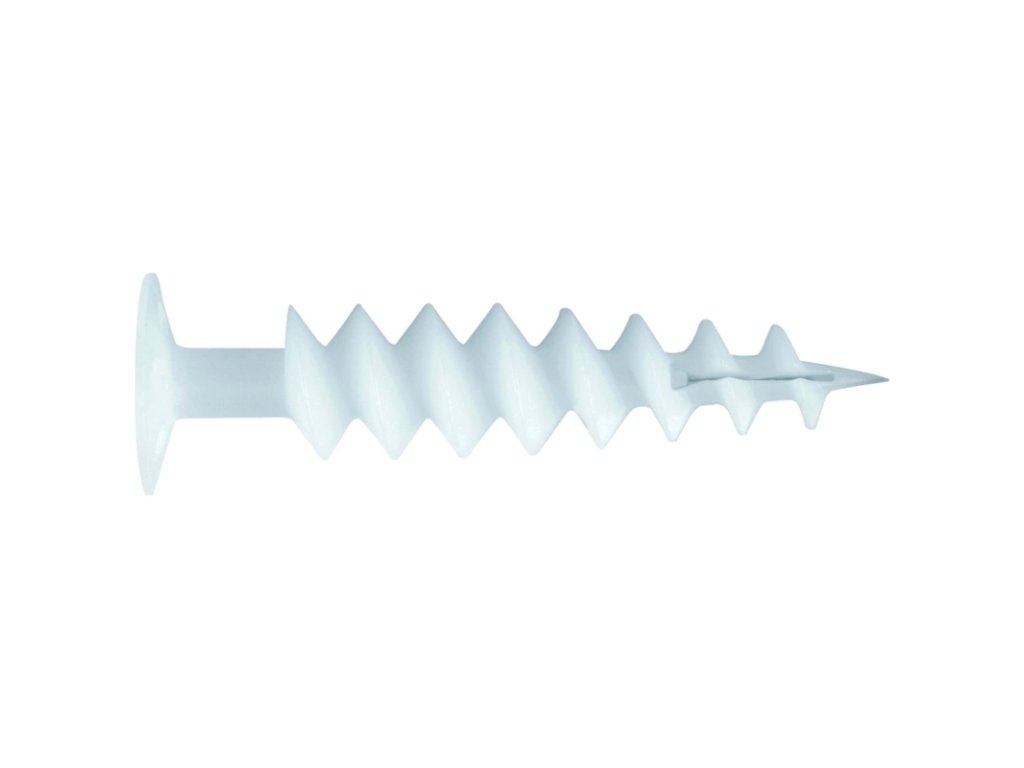 Hmoždinka je určena pro rychlou montáž do měkkých izolačních materiálů bez nutnosti předvrtání. Ideální pro upevnění lehkých konstrukcí, lišt, držáků nebo lehkých fasádních prvků do EPS, XPS, PUR a dřevovláknitých desek.