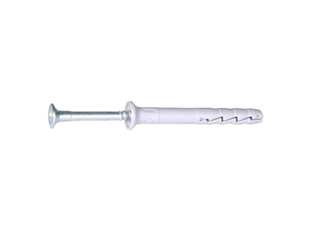 Hmoždinka natloukací zápustná 6×50 mm (100 ks) je speciální typ hmoždinky určený pro upevnění, kde je požadováno zapuštění hlavy hmoždinky do povrchu. Je vhodná pro masivní stavební materiály jako beton, cihly či kámen a umožňuje tak čistý a pevný spoj.