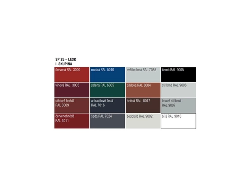 Povrchová úprava: | SP 25 – polyesterový lak 25 mm lesklé provedení |