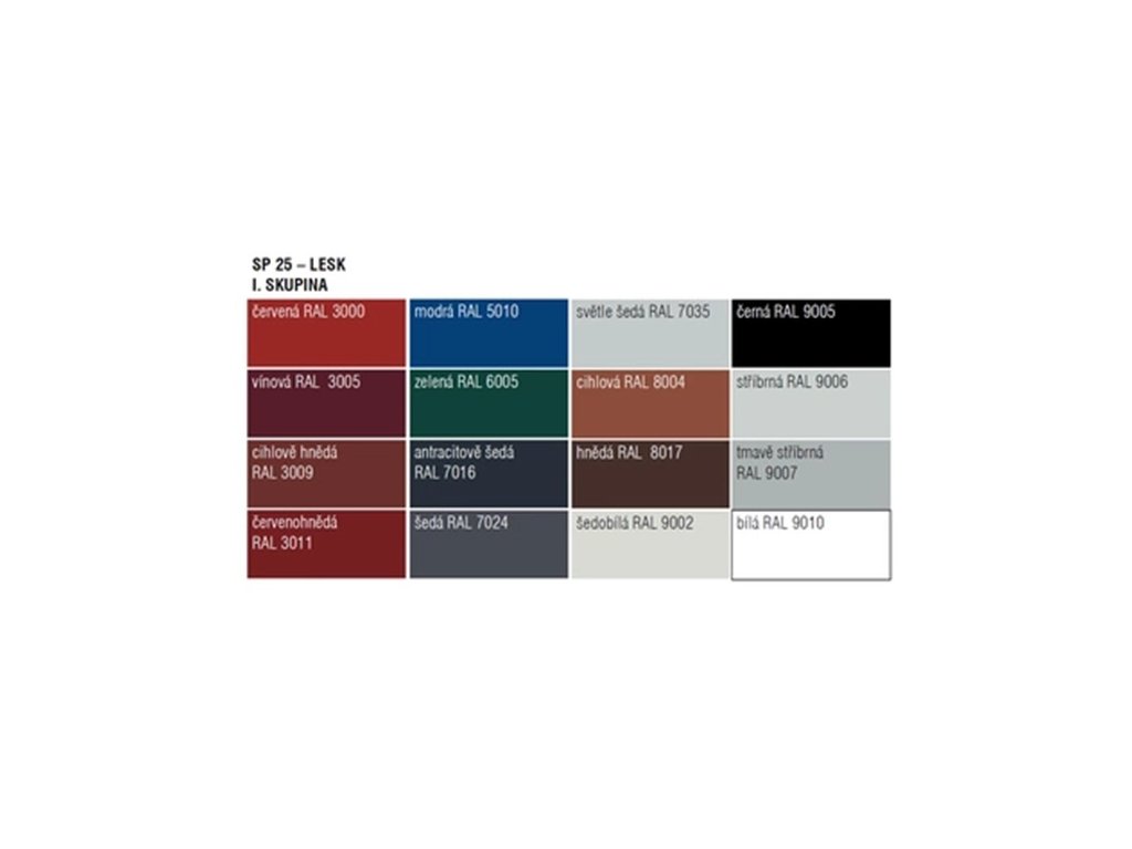 Povrchová úprava: | SP 25 – polyesterový lak 25 mm lesklé provedení |