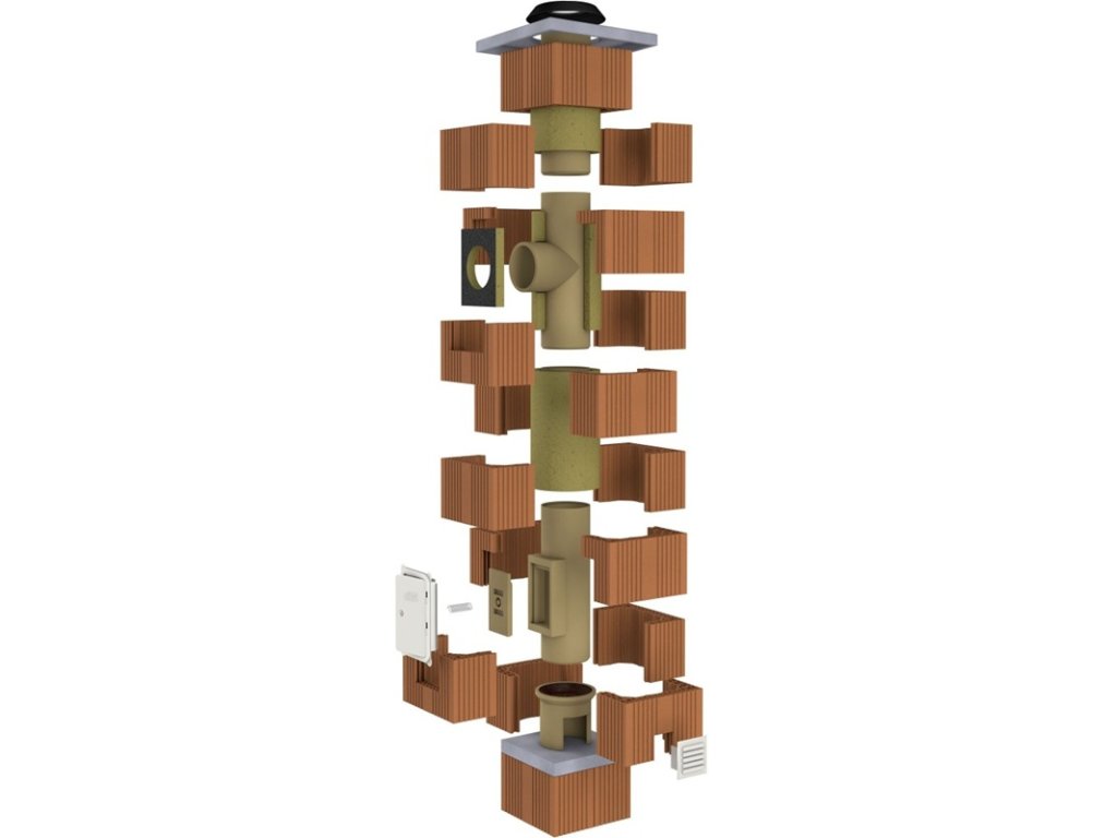 Komínový systém tvoří šamotová vložka, tepelná izolace a keramická tvarovka obvodového pláště. Vnitřní šamotové vložky společně s dodávanou šamotovou hmotou vytvoří celistvý komínový průduch, odolávající teplotním i vlhkostním změnám. Tepelná izolace mezi vnitřním šamotovým tělesem a vnějším obvodovým pláštěm má dvě zásadní funkce – tepelně odděluje šamot od okolí pro rychlou reakci na zátop a zároveň umožňuje dilataci vnitřního tělesa nezávisle na objemově stálém plášti. Obvodový plášť je tvořen cihelnými tvarovkami, zděnými pomocí přiložené malty.