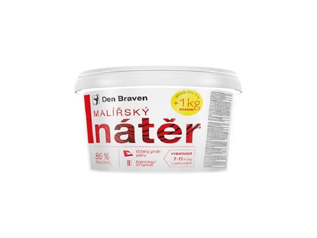 Malířský nátěr Den Braven je univerzální interiérová barva určená pro klasické malování hladkých i štukových omítek, dřevotřískových a cementotřískových desek, vápenocementových omítek, cihelného zdiva a betonových panelů. Díky vysoké kryvosti a bělosti poskytuje jednotný vzhled i při překrývání akrylových tmelů Den Braven.