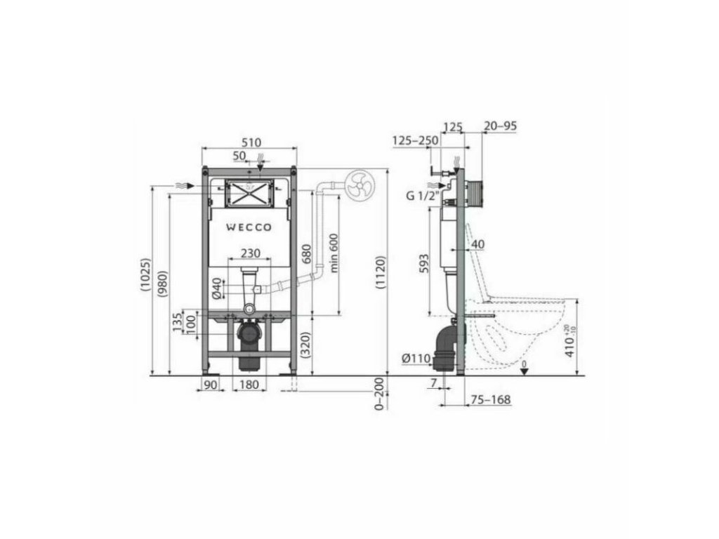 WECCO WM1/1120 je předstěnový instalační modul navržený pro montáž závěsného WC s minimální hloubkou 135 mm. Díky rozměrům 510 × 1120 × 135 mm je vhodný do stavebně omezených prostor, jako jsou sádrokartonové konstrukce nebo předstěny v panelových domech.