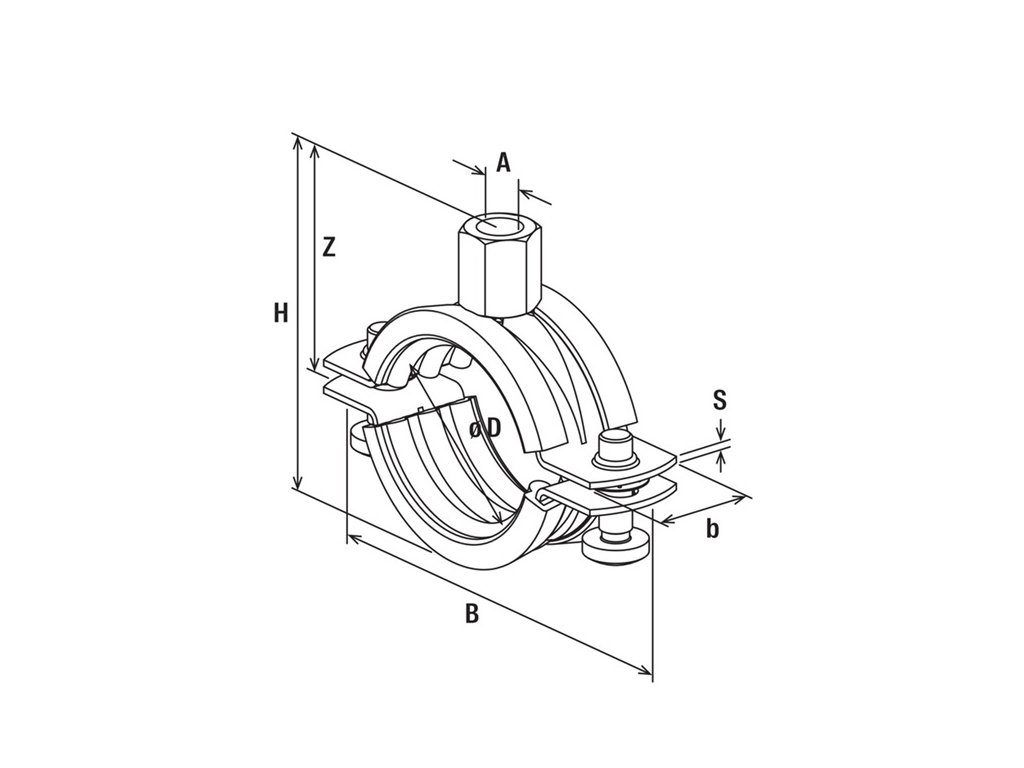 Vhodná pro uchycení menších kovových a plastových trubek v rozvodech vody, topení a klimatizace. Používá se s závitovými tyčemi, nosníky nebo konzolami se závitem M8.