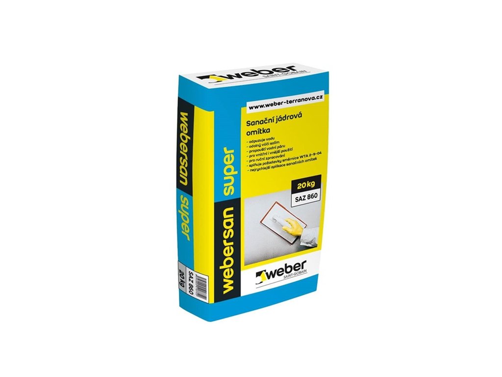 Sanační omítka WeberSan Super je suchá omítková směs určená pro sanace vlhkého a solí poškozeného zdiva. Vhodná pro cihelné, kamenné i smíšené zdivo v interiéru i exteriéru. Její vodoodpudivé a zároveň paropropustné vlastnosti zajišťují ideální podmínky pro vysychání a dlouhodobou ochranu zdiva. Omítka je součástí osvědčeného sanačního systému WeberSan.