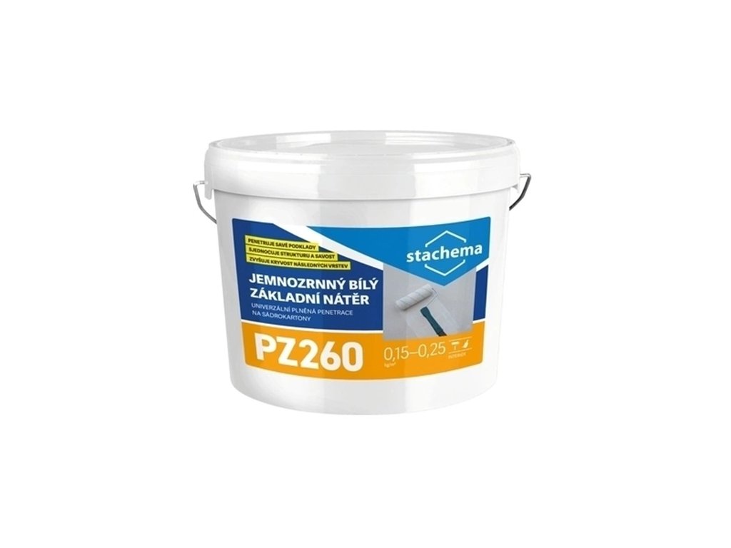 Penetrace univerzální Stachema PZ260 je jemnozrnný bílý základní nátěr určený pro sjednocení struktury a savosti podkladu, čímž zvyšuje kryvost a přilnavost následných malířských barev. Je ideální pro použití v interiéru, zejména na sádrokartonové desky a jiné hladké povrchy.