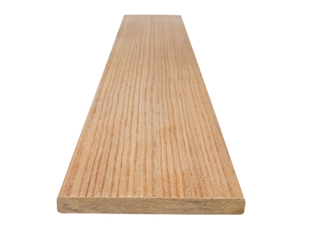 Profil o šířce 120 mm a tloušťce 11 mm je pevný, stabilní a barevně stálý. Povrch věrně imituje přírodní teak, ale na rozdíl od dřeva se nekroutí, nepraská a netvoří třísky. Údržba je minimální – stačí občasné očištění.