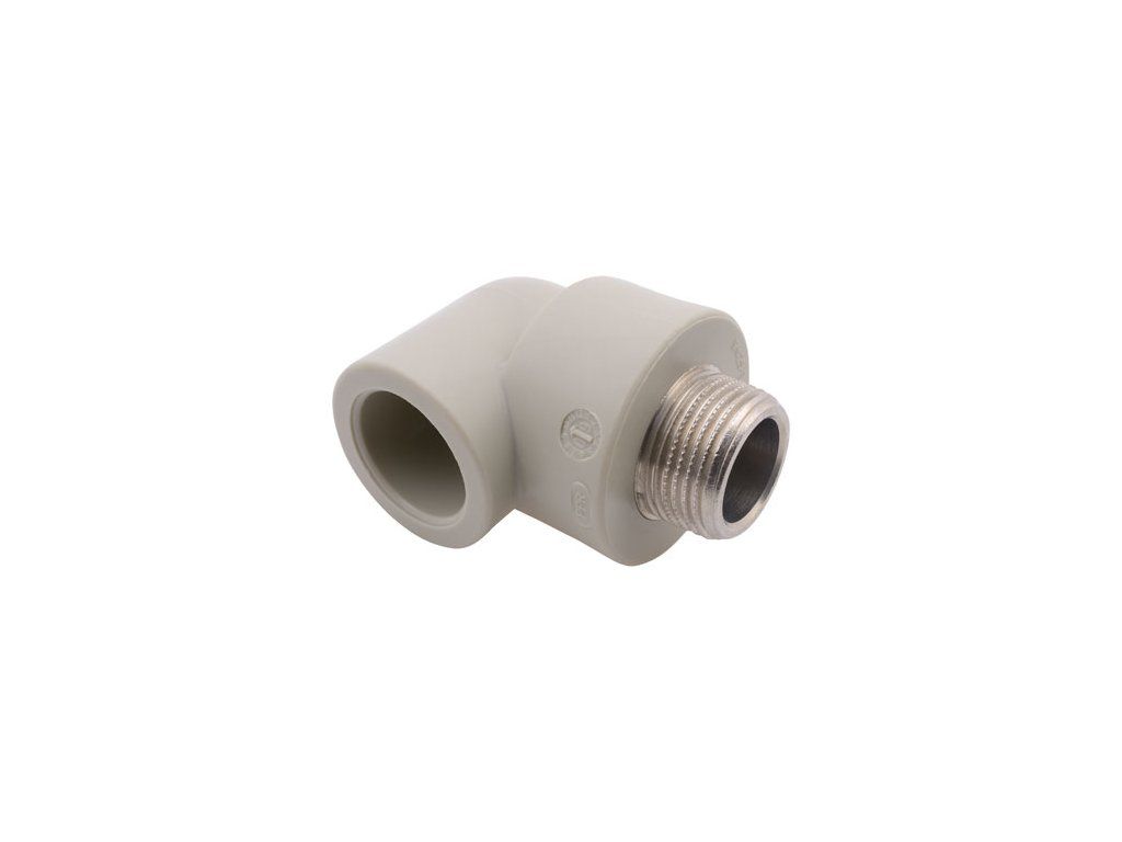 PPR koleno 20 × 1/2" 90° s vnějším kovovým závitem je kombinovaná tvarovka určená pro změnu směru potrubí a přechod na závitové spojení. Umožňuje snadné napojení armatur, ventilů nebo jiných prvků se závitem.