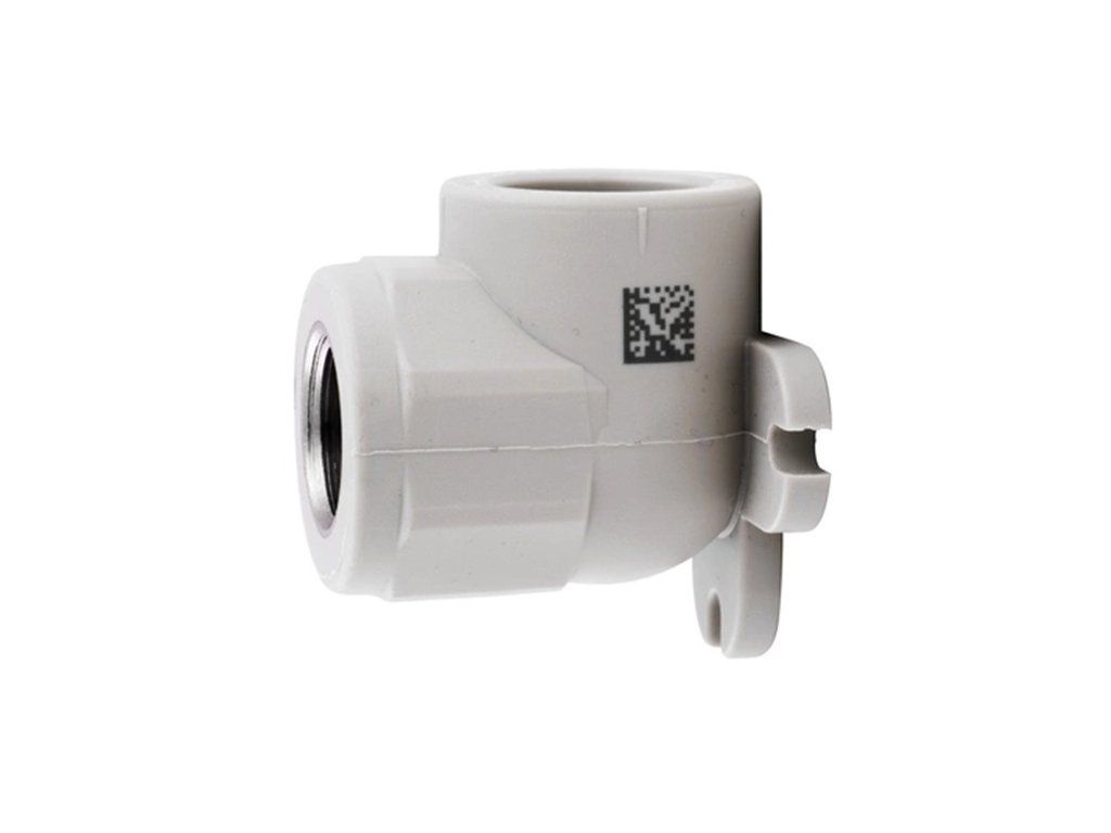 PPR nástěnné koleno 20 × 1/2" s vnitřním závitem je kombinovaná tvarovka určená pro pevné připojení vodovodních armatur, jako jsou baterie nebo ventily, na plastové potrubí. Koleno umožňuje přechod z PPR potrubí na kovový závit a zároveň fixaci do stěny.