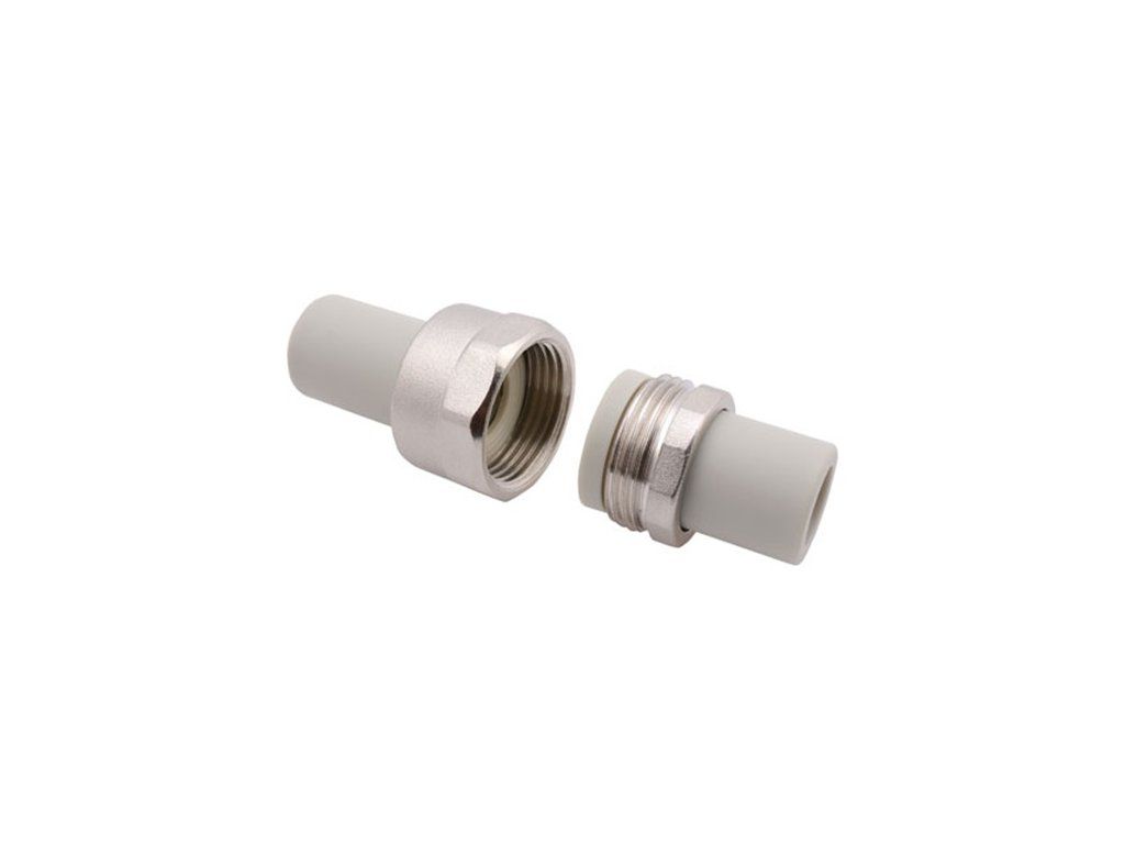 PPR rozebíratelný spoj 25 mm je kombinovaná tvarovka určená pro spojení potrubí s možností snadné demontáže. Umožňuje rozpojení systému bez nutnosti řezání potrubí, což je ideální pro servisní nebo přístupová místa.