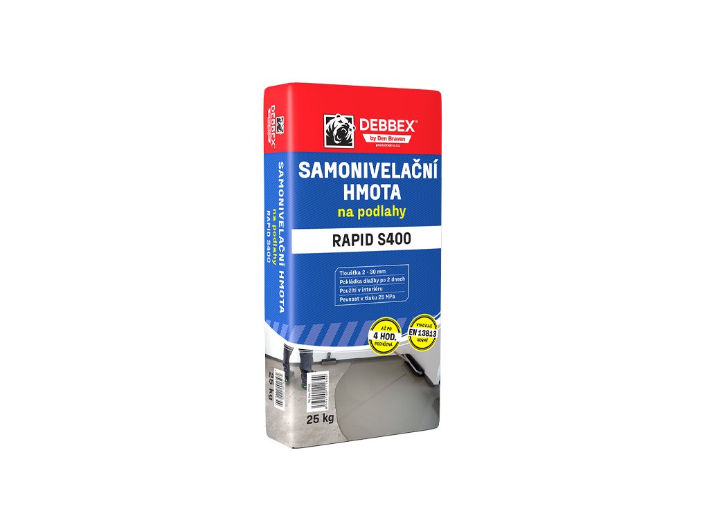 RAPID S400 je cementová samonivelační vyrovnávací hmota s obsahem plniv a speciálních zušlechťujících přísad. Je určena jako vyrovnávací vrstva v občanské a bytové výstavbě v místech, která nejsou namáhána na obrus. Umožňuje rychlé a přesné vyrovnání nerovností podkladů až do výškového rozdílu 30 mm.