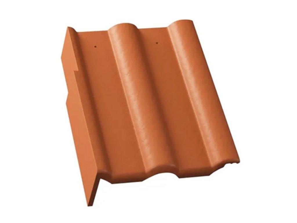 Betonová okrajová taška levá z řady KMB BETA Prima v odstínu cihlová je určena k preciznímu zakončení levého okraje střešní plochy. Zajišťuje ochranu proti větru a vodě, zároveň podtrhuje tradiční vzhled střechy díky své hladké povrchové úpravě Prima.