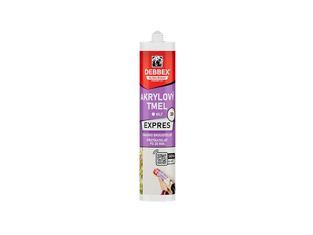 Tmel akrylový Den Braven EXPRES bílý je rychleschnoucí jednosložkový plnící tmel na bázi disperze, ideální pro interiérové práce. Vyznačuje se snadnou aplikací, vysokou přilnavostí k porézním materiálům a možností přetírání již po 20 minutách od aplikace. Po vytvrzení je odolný mrazu a na kovy nepůsobí korozivně.