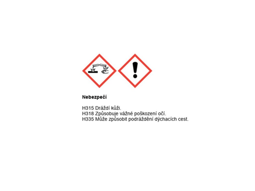 - 🔴 Nebezpečí při kontaktu s vodou – žíravý účinek