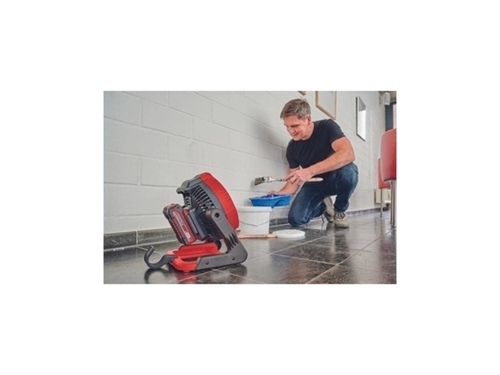 Vhodný pro větrání, chlazení a sušení na stavbě, v dílně, garáži, kanceláři nebo venku. Díky akumulátorovému napájení není závislý na elektrické síti a poskytuje naprostou volnost pohybu. Kompaktní konstrukce a možnost upevnění umožňují snadné použití prakticky kdekoli.